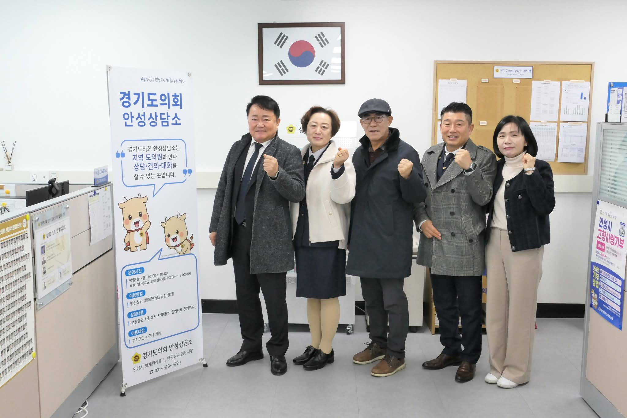 한편, 경기도의회 안성상담소는(안성시 비룡5길 30, 한경대 산학협력관 416호 ☎ 031-673-5220)는 지역구 도의원과 직접 만나 주민의 각종 민원 상담부터 지역 발전을 위한 다양한 논의를 할 수 있는 곳으로 평일 10시에서 18시까지 운영한다.