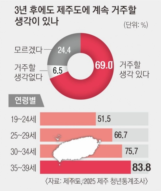 제주도는 제주 청년의 삶 전반을 분석한 ‘2025 제주 청년통계’ 조사(도내 19~39세 2000명 대상) 결과를 확정·공표하고 이를 도정 정책에 본격 활용하겠다고 29일 밝혔다.