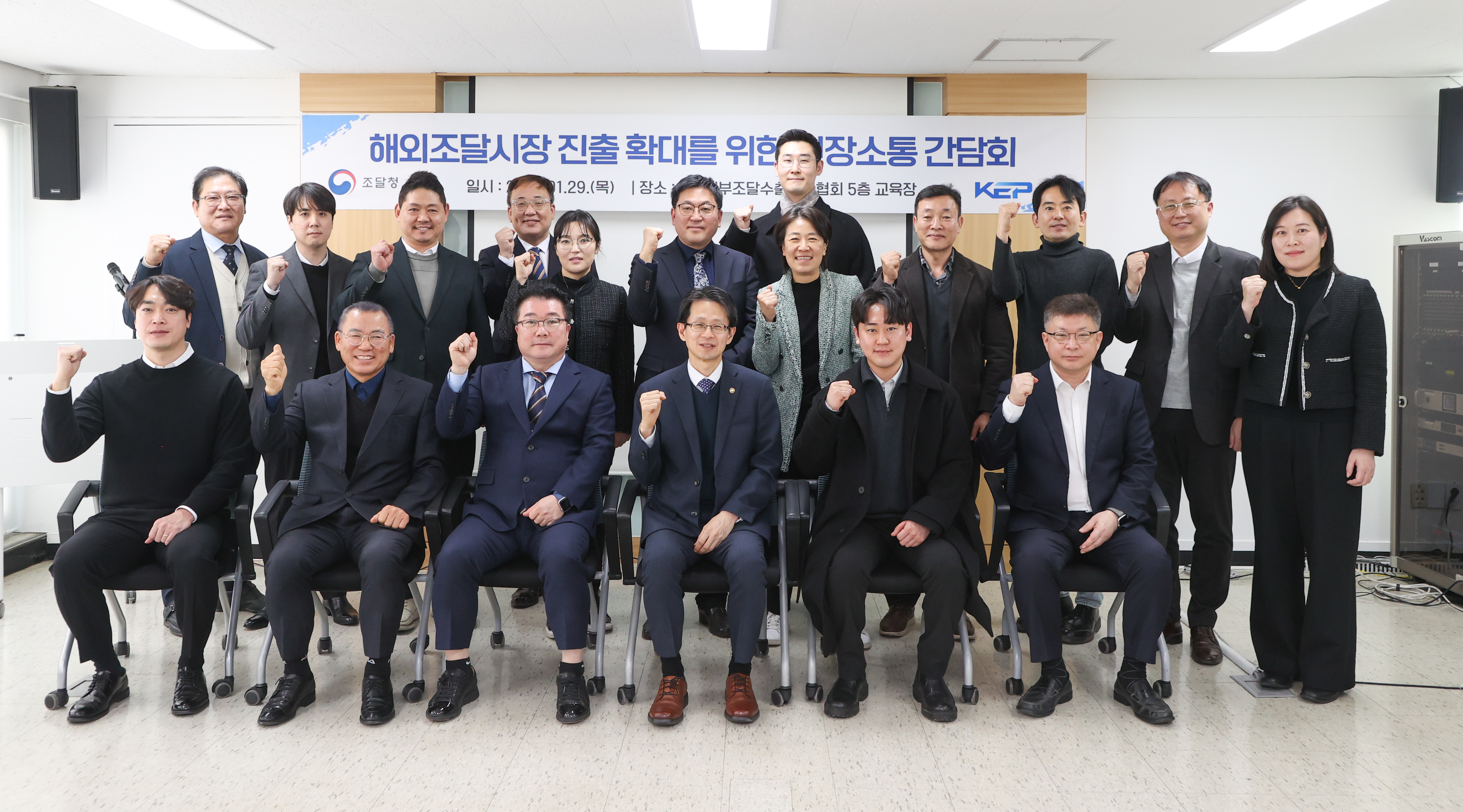 조달청(청장 백승보)은 29일 정부조달수출진흥협회(서울 서초구)에서 해외조달시장 진출 기업과 현장소통 간담회를 개최하고, 우리 조달기업의 해외조달시장 진출을 위한 다양한 지원방안을 논의했다.
